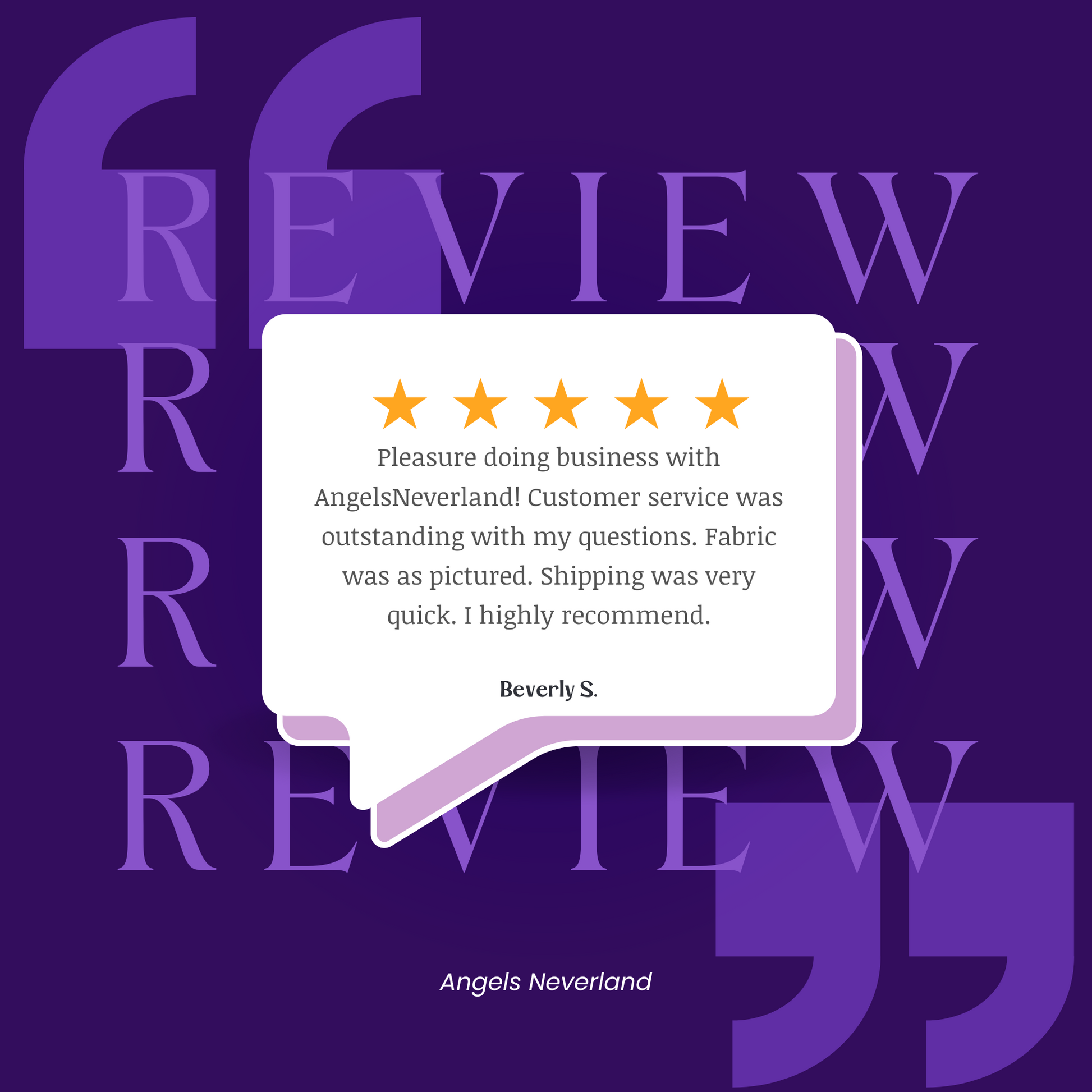 Angels Neverland has a 7-day return policy, which means you have 7 days after receiving your item to request a return. This is a generous policy as most cut fabric is typically not returnable. Buyer is responsible for return shipping charges. Unless there is something wrong with your fabric, buyer is responsible for the initial shipping charges if previously paid by Angels Neverland, shipping charge will be deducted from refund. Insurance and tracking must be included when returning items. Returned packages not received cannot be refunded.