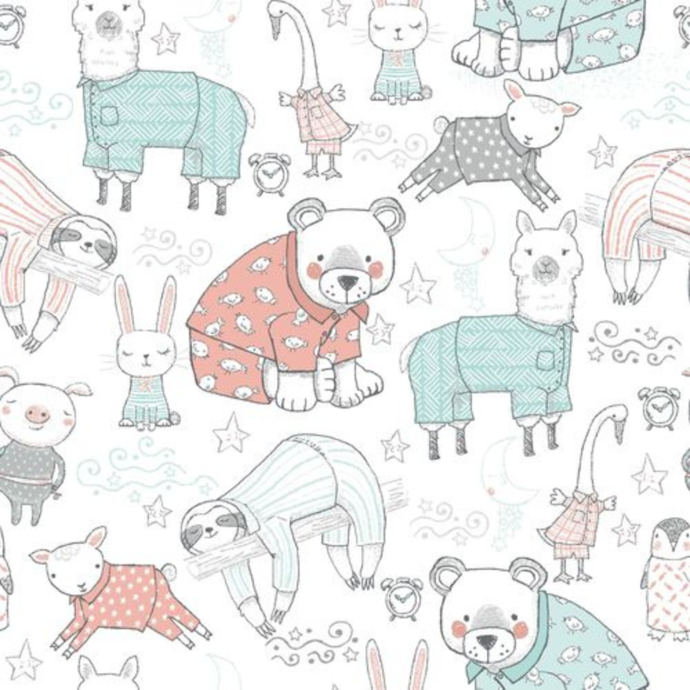 Animals in PJs, all tucked in and ready for bed? Create a night-time treasure for your little one with this cozy and fun flannel. So many favorite animals, bears, llamas or alpaca (you decide), goose, bunny, sloth, penguin, sheep and pig! Hard to find, discontinued by manufacturer.