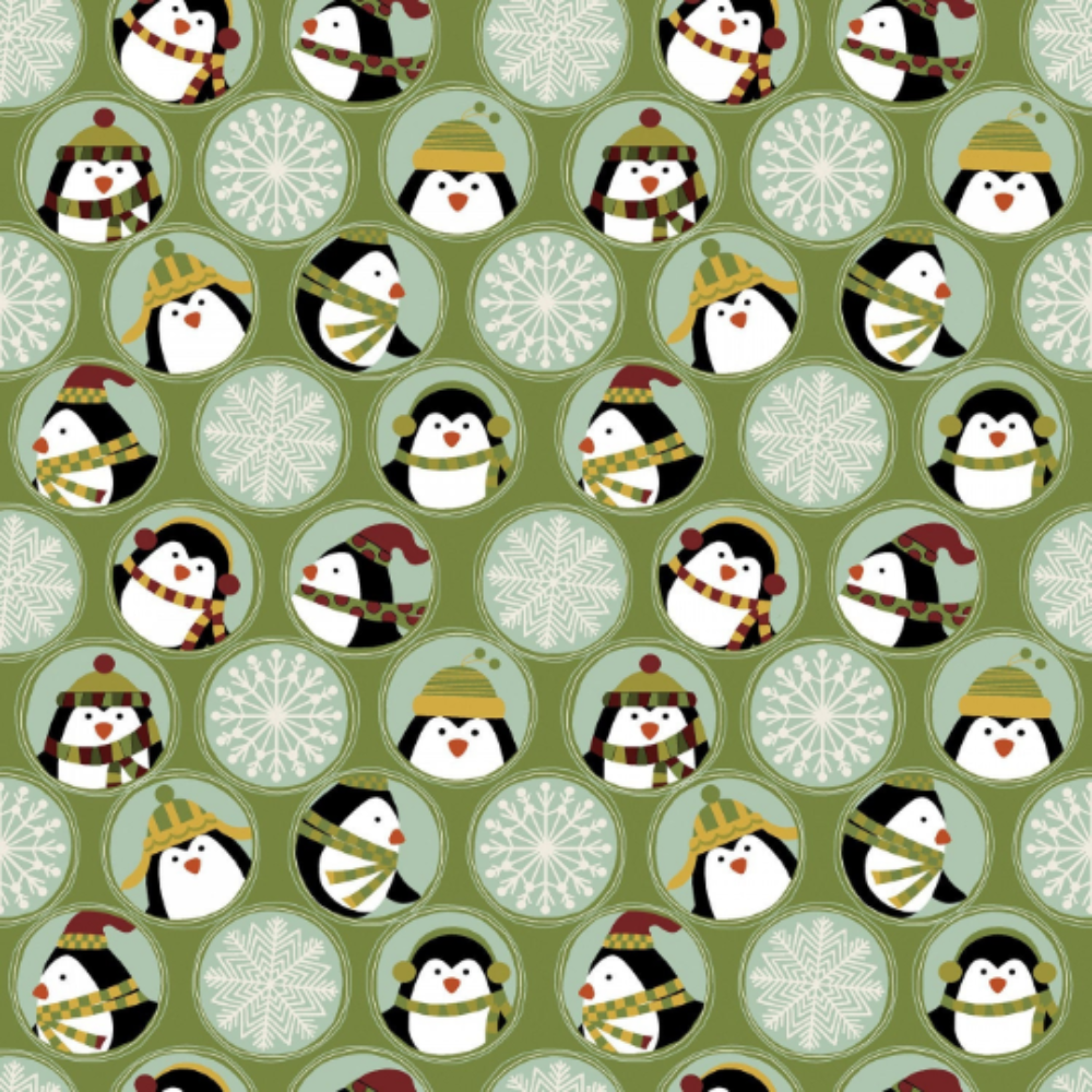 - 5 fat sixths (12" x 21")--solid red, solid green, gold metallic snowflakes, penguins w/snowflakes on green, and metallic bias plaid
