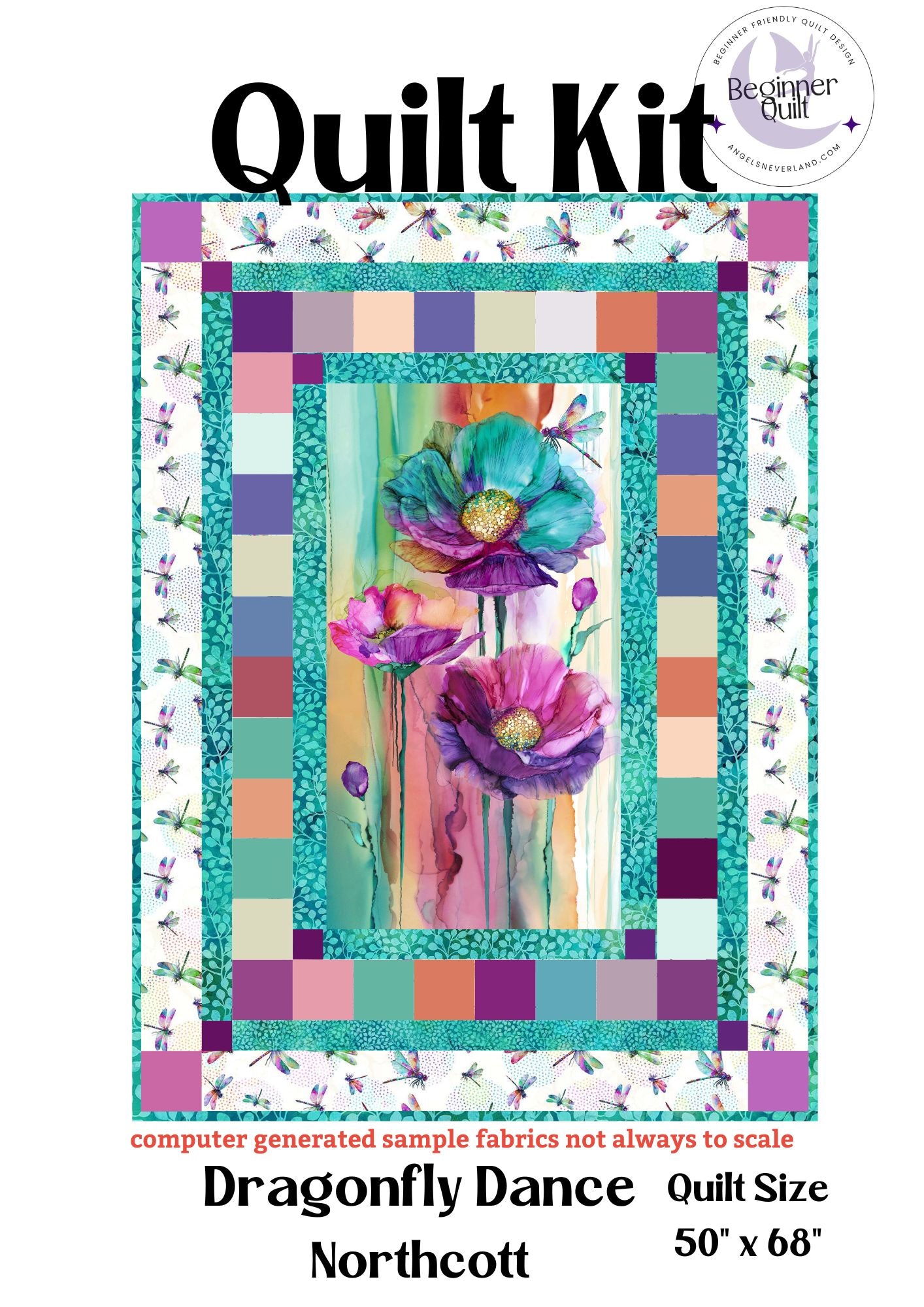 Dragonfly Dance Panel & PRECUTS with Dragonfly Border - DIY Beginner Quilt Kit - Picture This Pattern