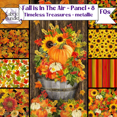Fall is In the Air with Shimmer Honey, 8 pc + Panel FQ Bundle of cotton quilting fabric.