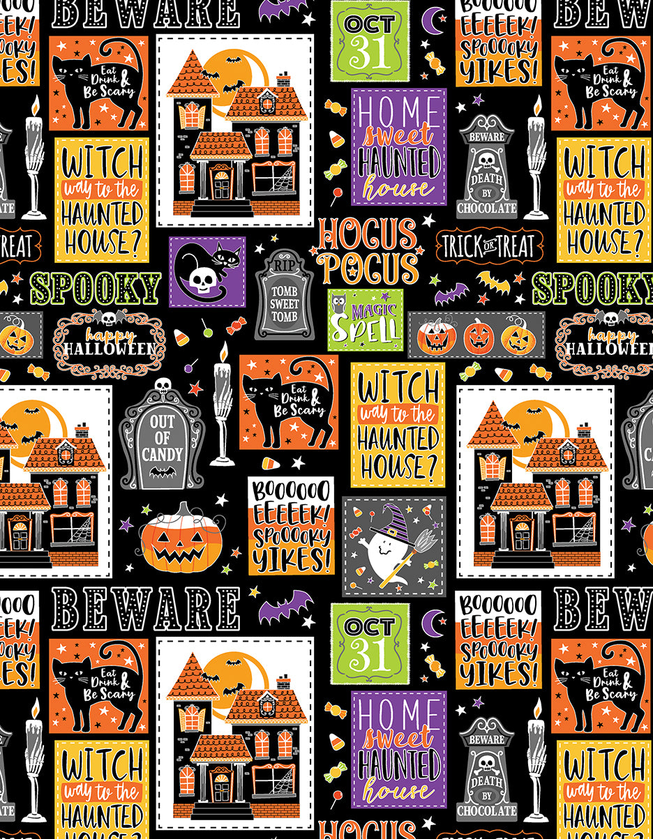 Glow-o-ween pre-cut 10" quilt squares from Benartex, Glow in the Dark Halloween Fabric