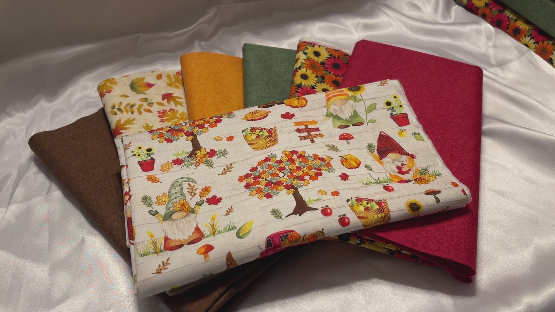Hello Fall Gnomes Pumpkin Patch & Apple Picking Fabric Bundle (FQs, 1/2 yard, 1 yard), 7 pieces