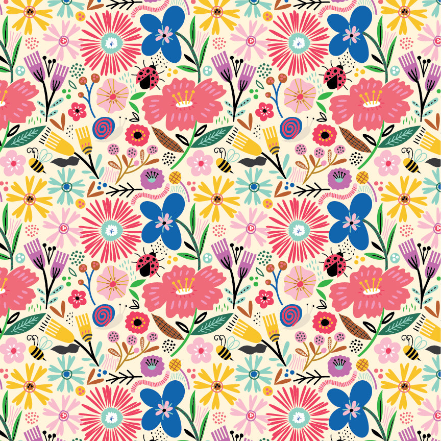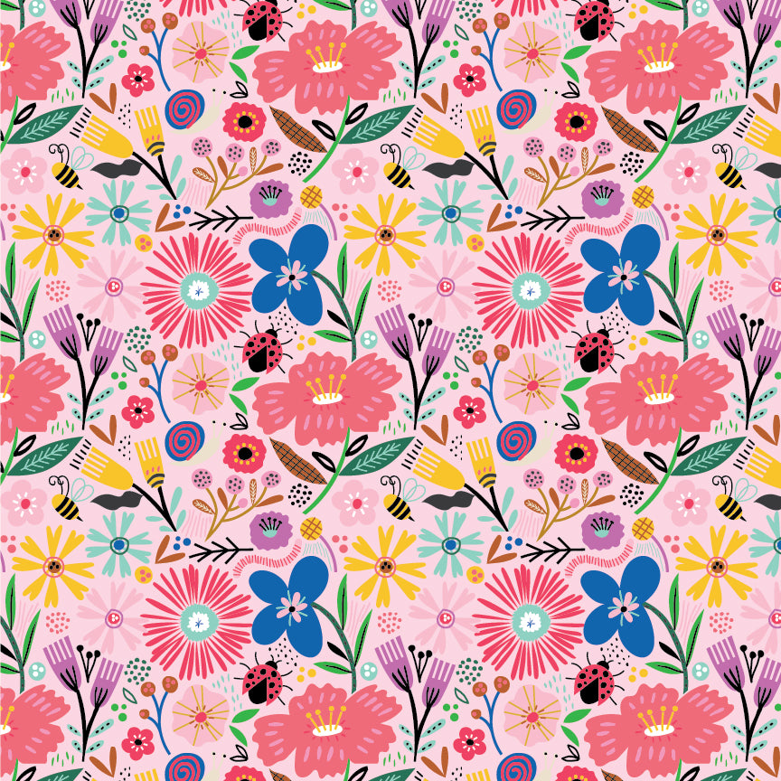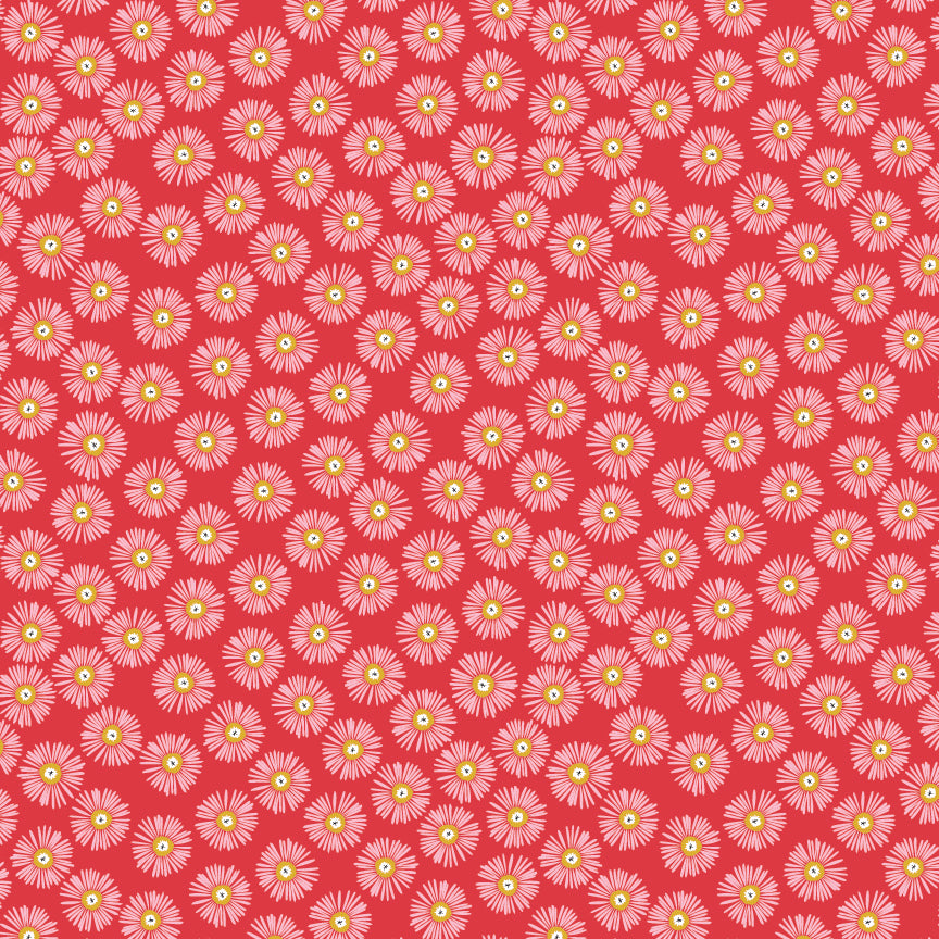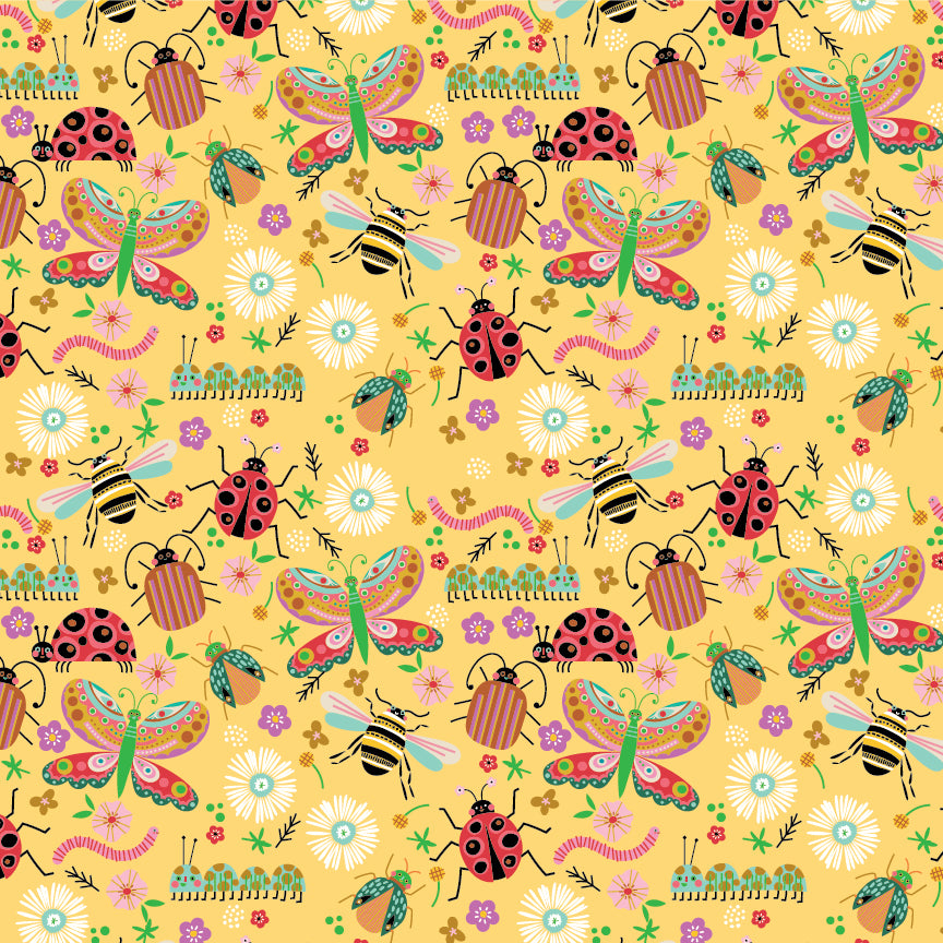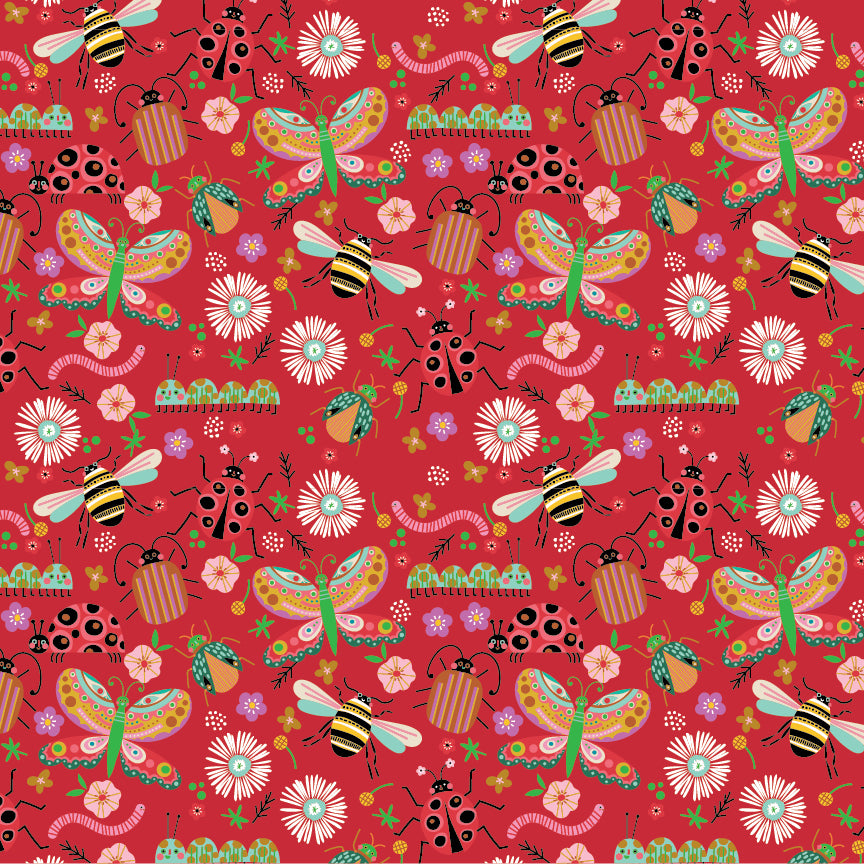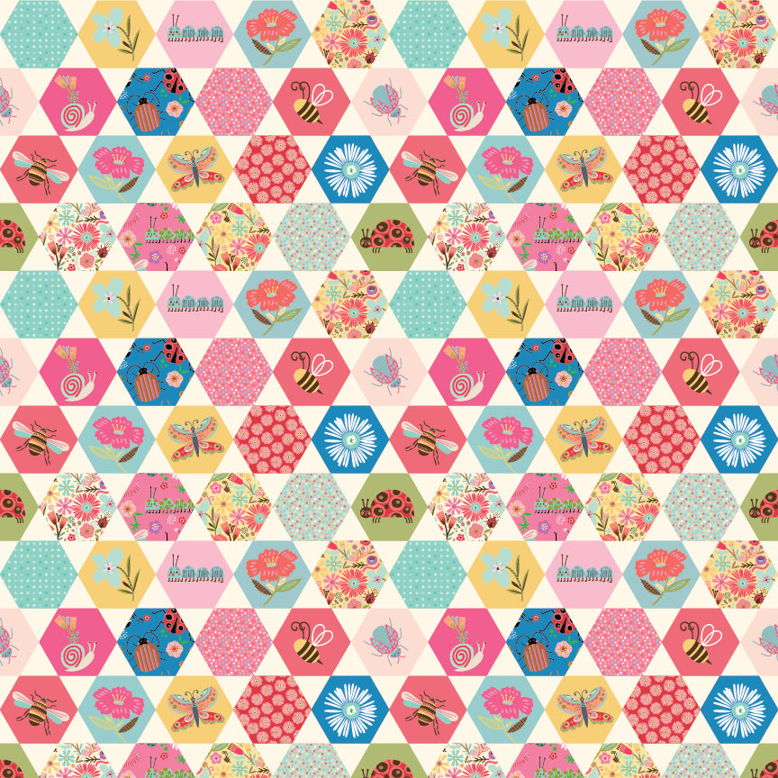 Whether your love of bugs comes from raising curious kiddos, retro cars, or garden strolls filled with butterflies and blossoms, this collection is the perfect fusion of fun and floral. The color palette is cheerful and nostalgic—reds, pinks, sunny yellows, and soft blues. You'll also find sweet coordinates like tossed flowers, a geometric grid, and charming hexi prints that tie it all together. Fancy a cheater quilt? Head over to the hexi-print fabric listing to jump-start your next project!