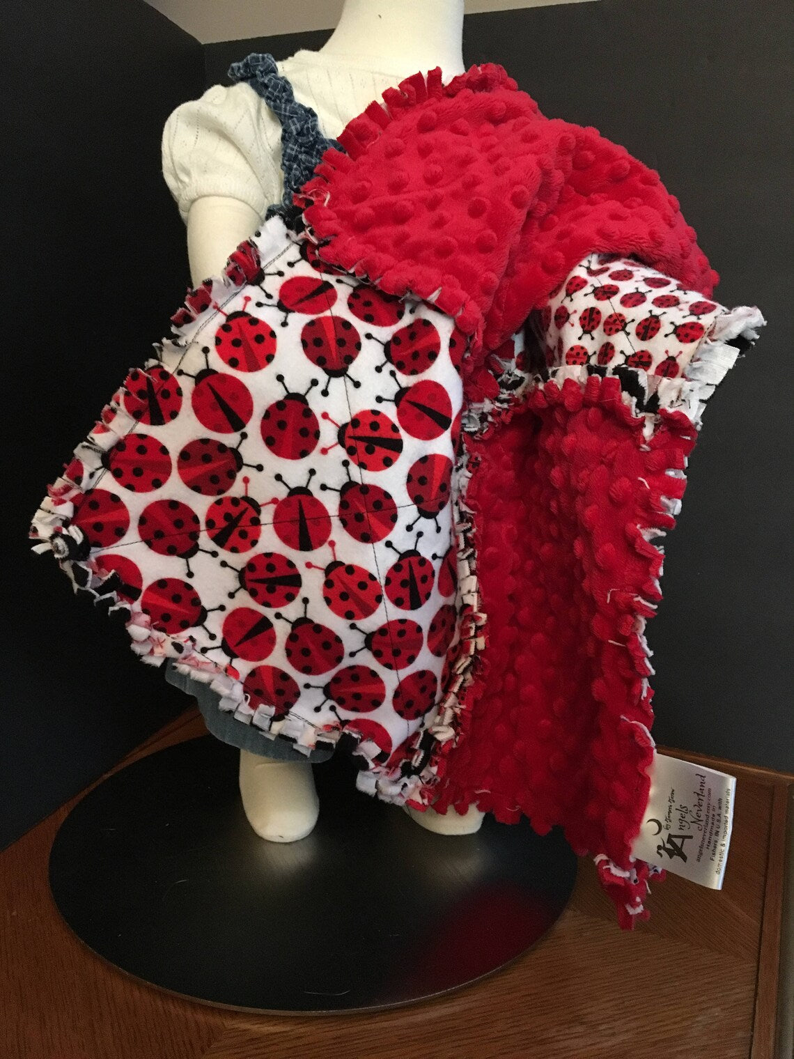 One of a kind Lady Bug Lovey Blanket, Rag quilt style. This item is sold out, but other styles are available to order, please email me HELP@Angelsneverland.com