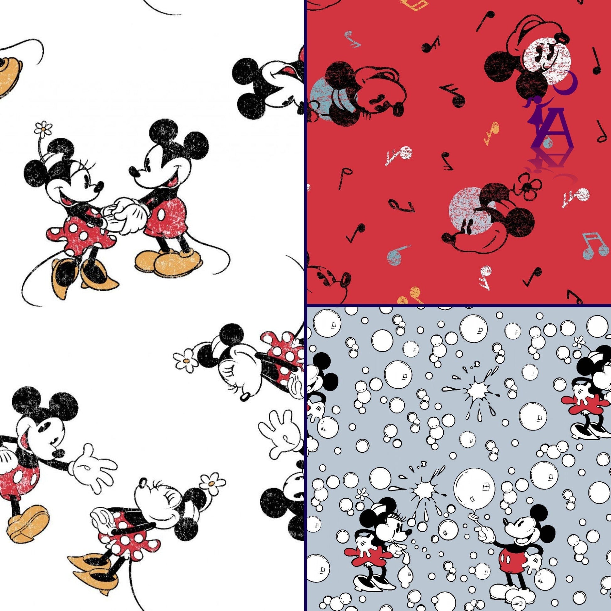 Mickey and Minnie Mouse Cotton Quilt Fabric Yardage & Disney Panel Only