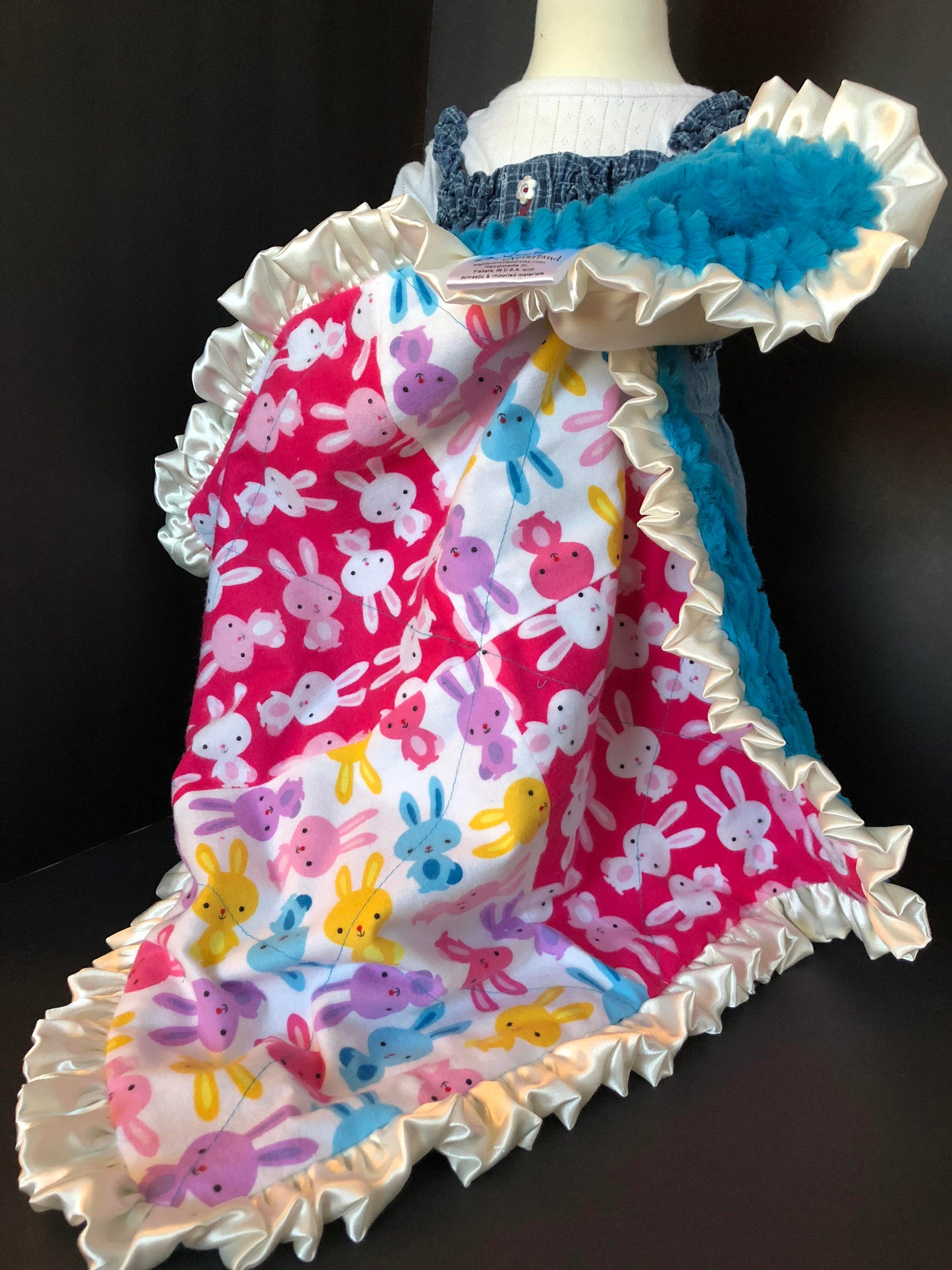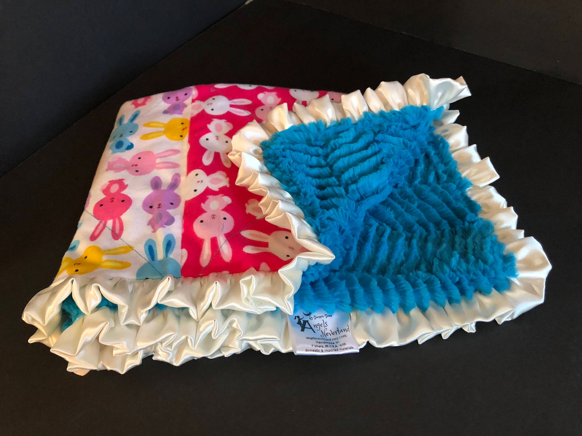 One of a Kind Bunny Lovey Blanket made with Ziggy Luxe MINKY and Flannel perfect Easter Gift