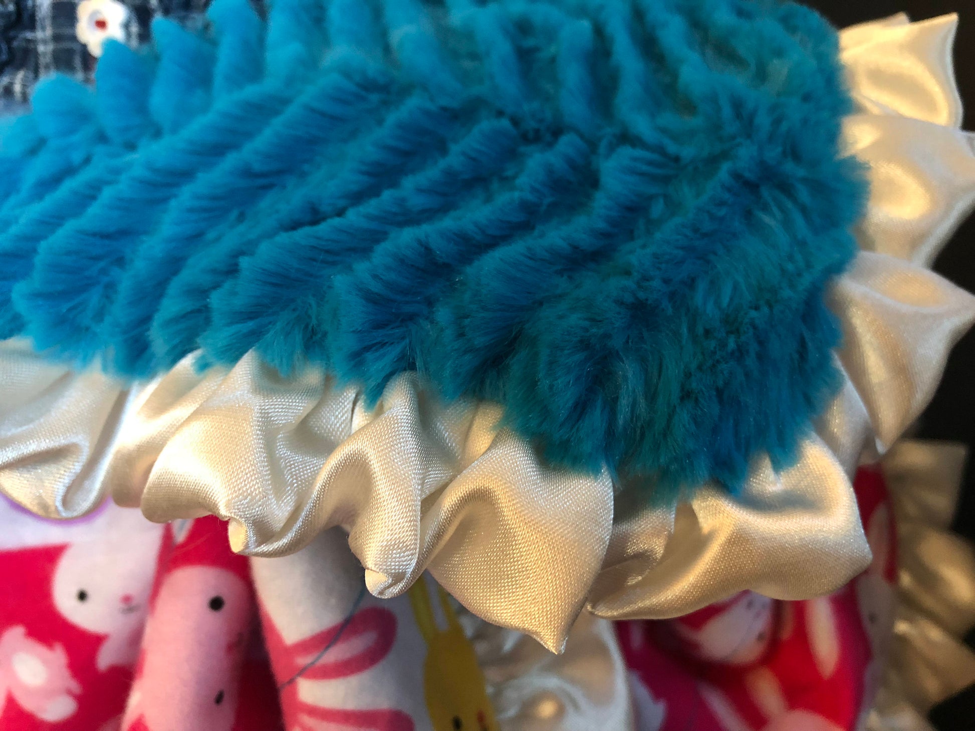 Email Help@Angelsneverland.com for CUSTOM ORDERS. Choose from Flannel fabrics shown here or other FLANNEL FABRIC in the Store. Each blanket requires 4 flannel fabric choices for front 1 minky fabric for back (these are super cute with the ziggy minky This design includes your choice of Shannon Cuddle Minky on the back, and Urban Zoologie Flannel on the front. Ruffle is Silky Satin by Shannon Fabrics