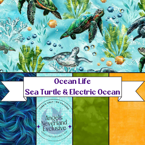 Ocean Life FQs Bundle - Sea Turtle and Electric Ocean Fabric