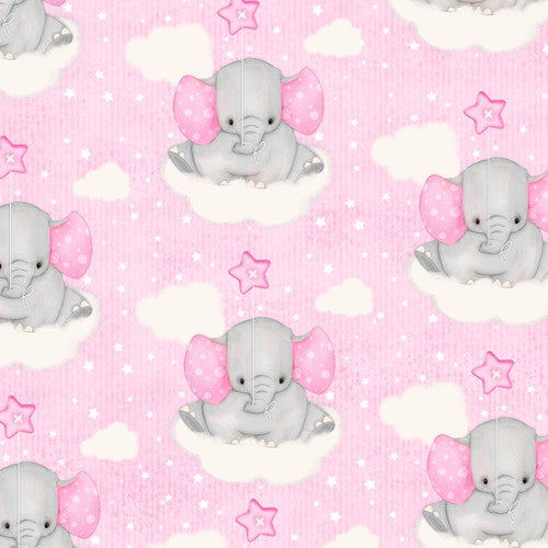 Pink & Grey Elephants on Clouds with Stars Comfy baby flannel fabric by the yard