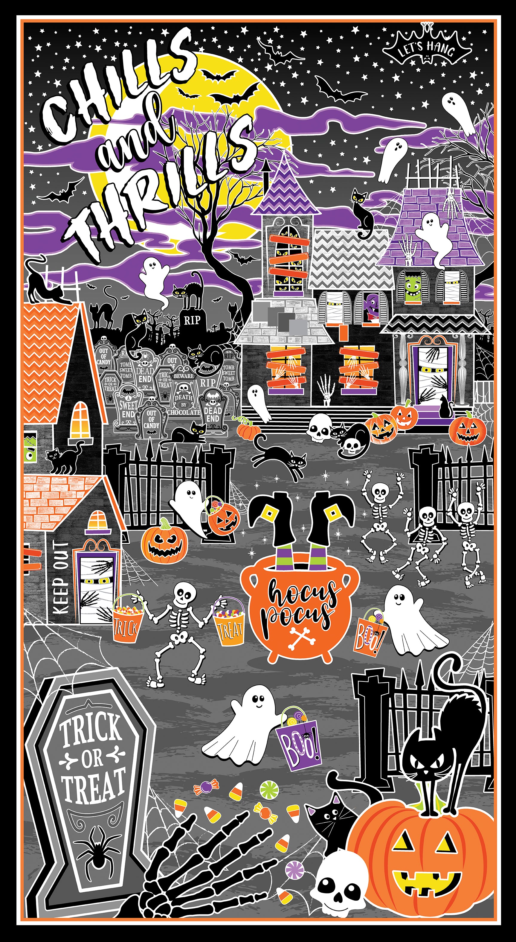 Spookyville Chills & Thrills Glow in the Dark Halloween Cotton Fabric QUILT KIT