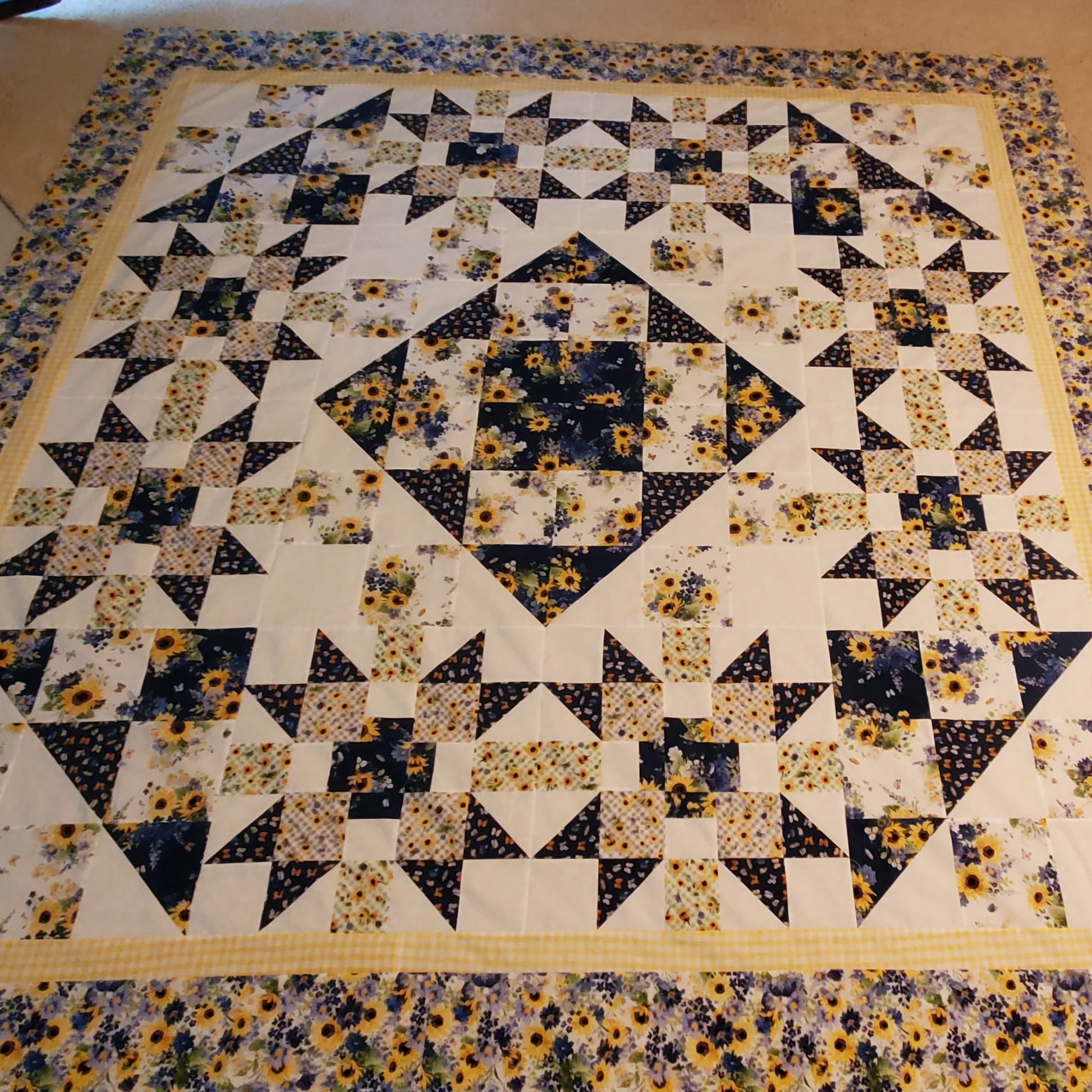 Sunflower Bouquets Rotating Stars QUILT KIT (yellow) approximate finished size 88" x 88
