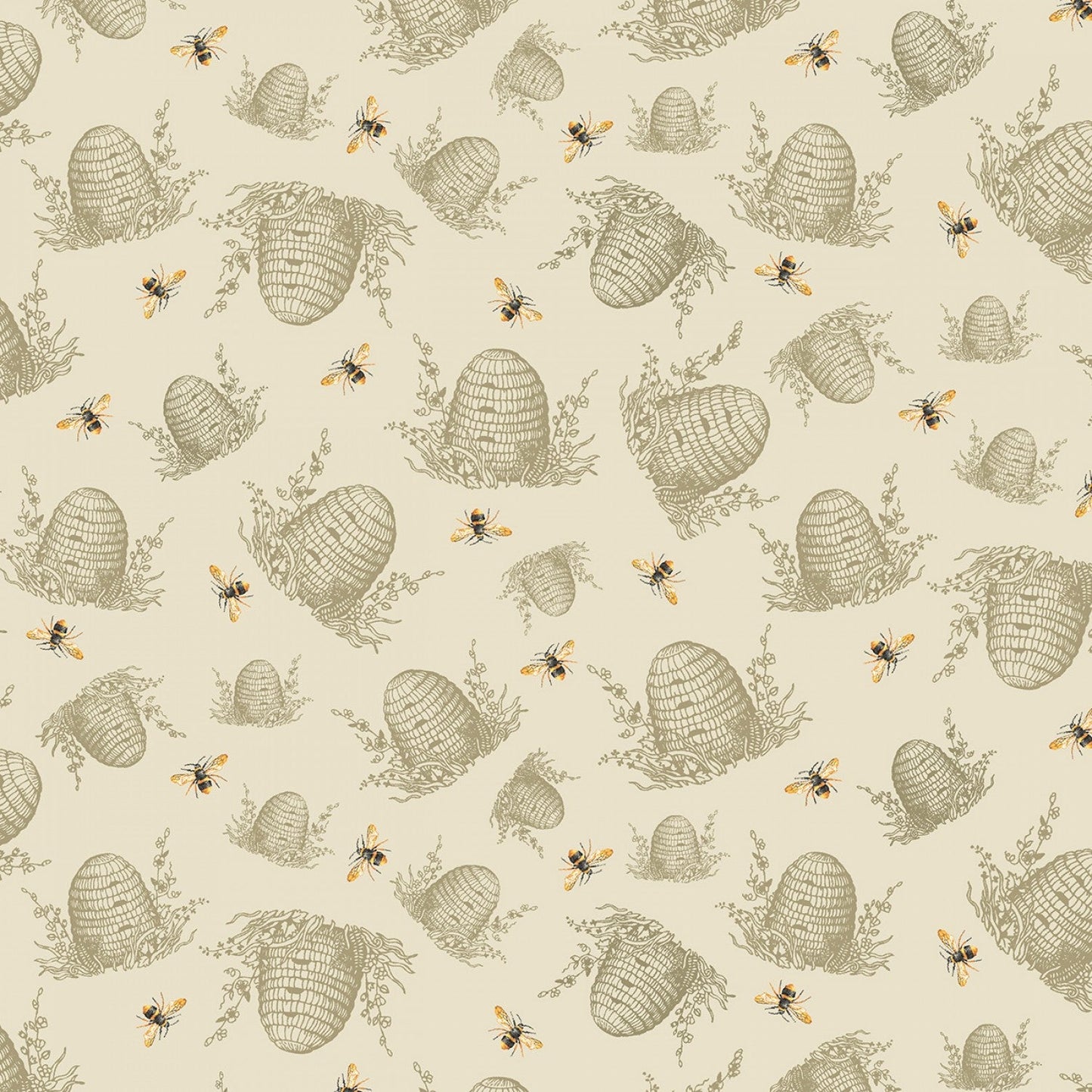 Tossed Bee Hive Cotton Quilting Fabric, Honey Bee Farm