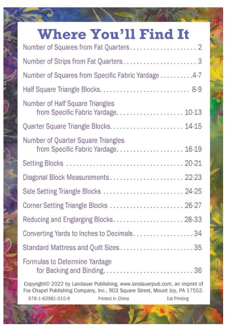 Updated No Math Quilt Charts & Formulas - Quilting Reference Book