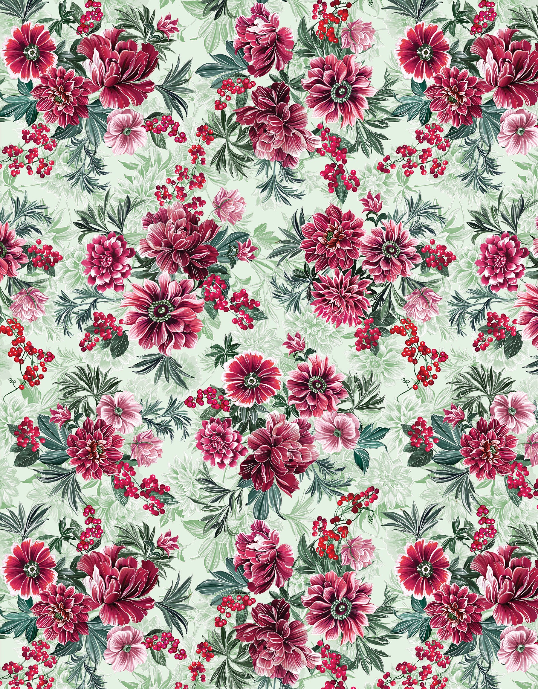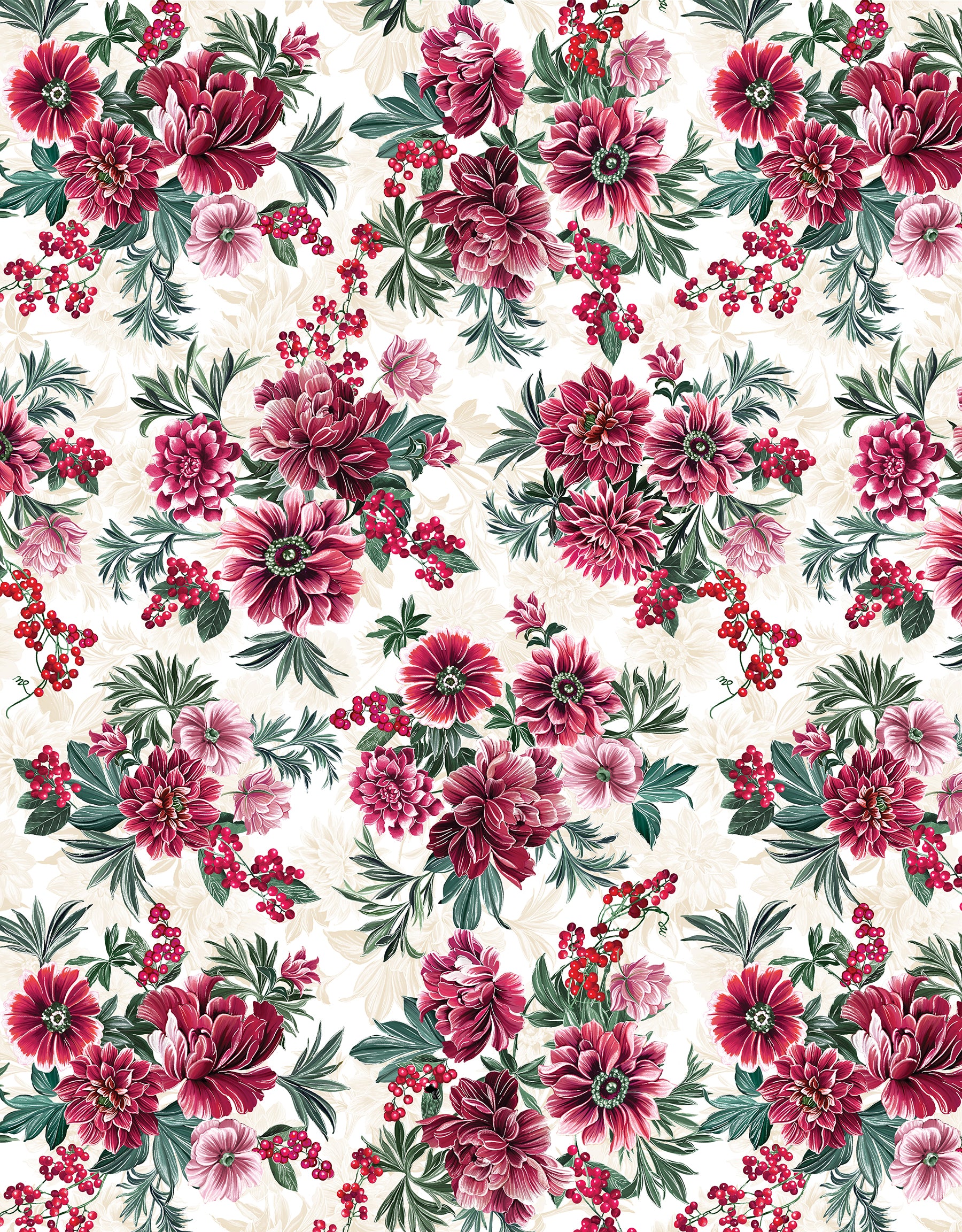 Large full flowers burst into bloom, stylized botanicals sway in the breeze, and an elegant stripe adds the perfect finishing touch to this sophisticated collection. In exquisite shades of berry, pink, sage and cream all highlighted with a hint of pearlescent, Winterberry Floral is available at Angels Neverland in PRECUT 2.5 inch jelly roll / STRIP-PIES only while supplies last.